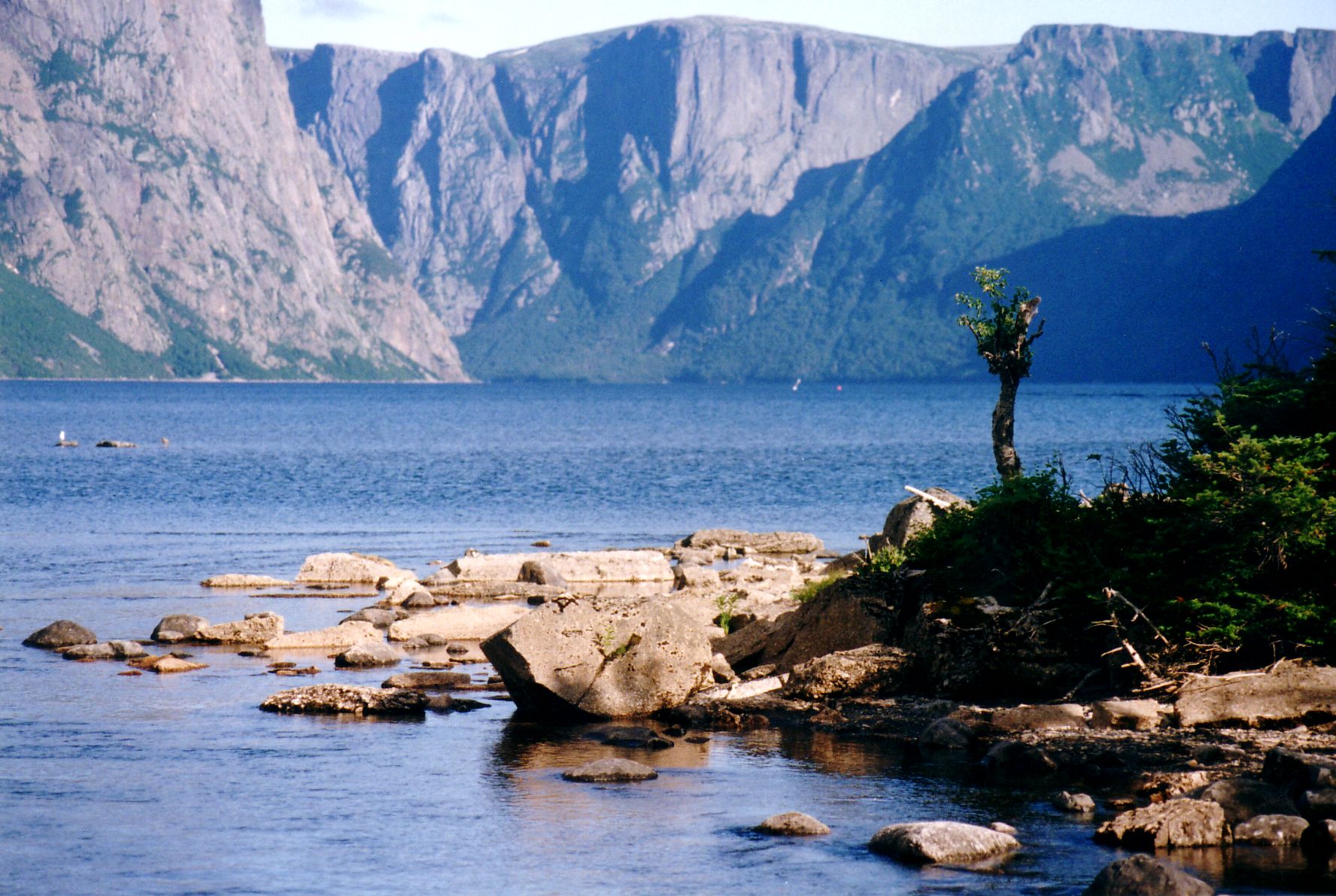 | Lo Hi | June 2002 Vacation in Newfoundland. A view of Western Brook Pond, the famous fjord which is now pure water because it has been cut off from the sea. | |