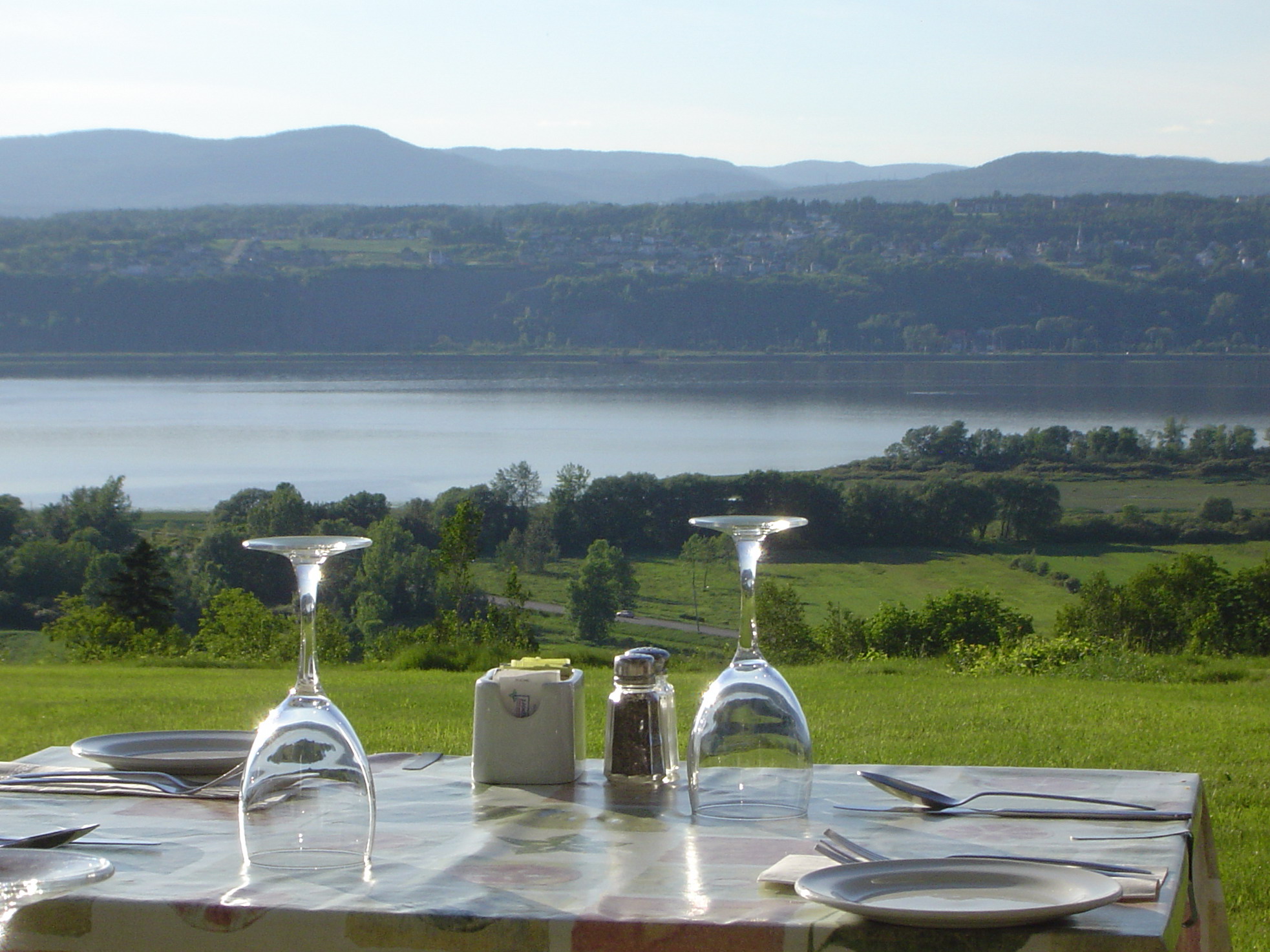 | Lo Hi | June 2005 Vacation in Quebec. The view from Les Ancetres Restaurant on Isle d'Orleans. | |