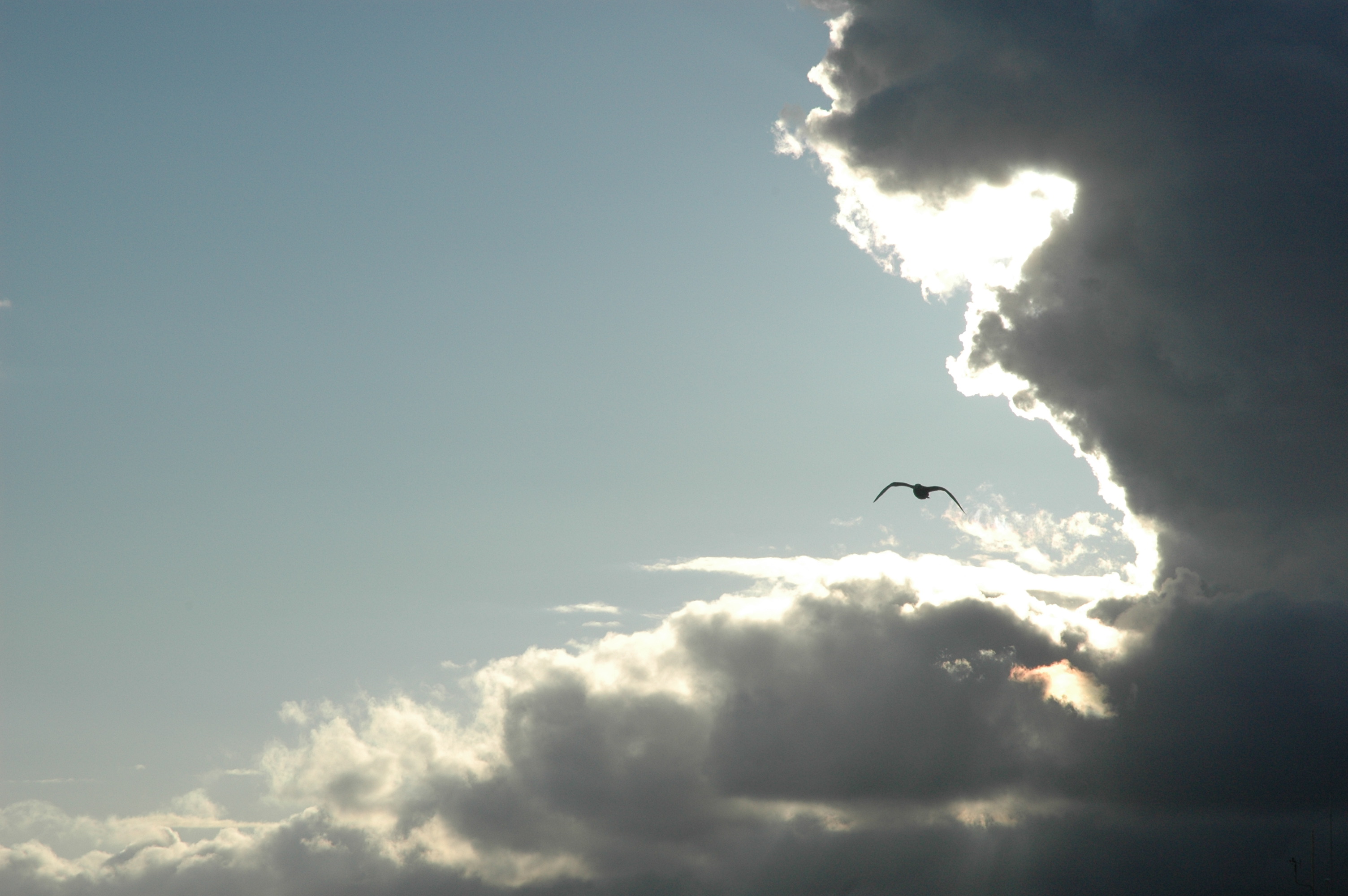 | Lo Hi | April 2007 Vacation in Vancouver, BC. On the ferry returning from Nanaimo to Horseshoe Bay as the sun was setting when a seagull flew right out of the cloud formation. | |
