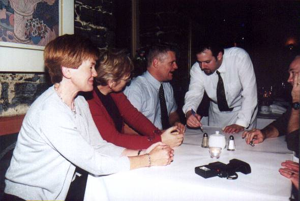 | At Gibby's, left to right: Bronwen, Mike, Susan, Frank .... Greg, Susan |