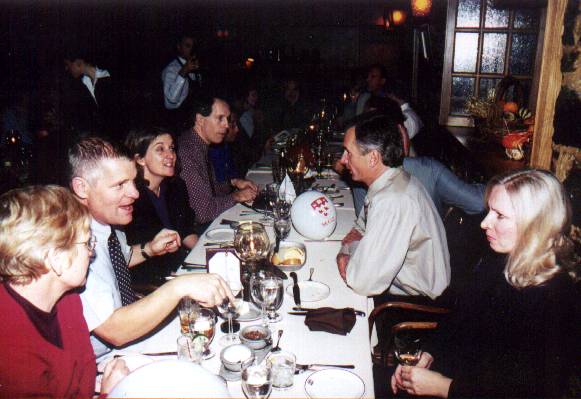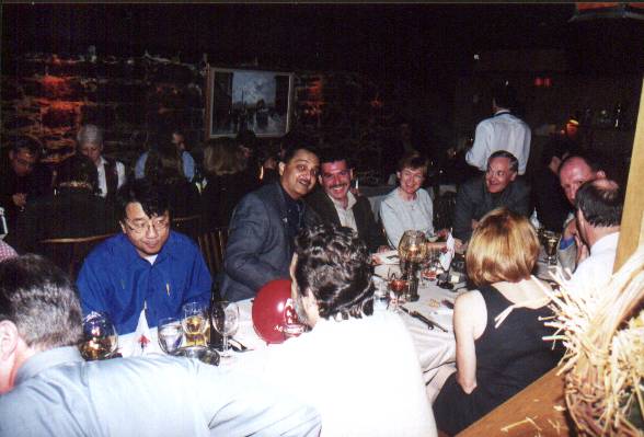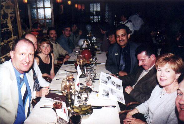 | At Gibby's, left to right: Susan Bechard, Jimmy Ross-Jones, Arar Altounian, Greg Rogers, Susan Lilholt .... Susan and Frank Pare, Ed Chin, Michael Dolsingh |