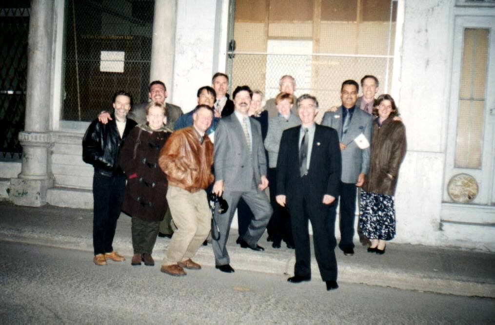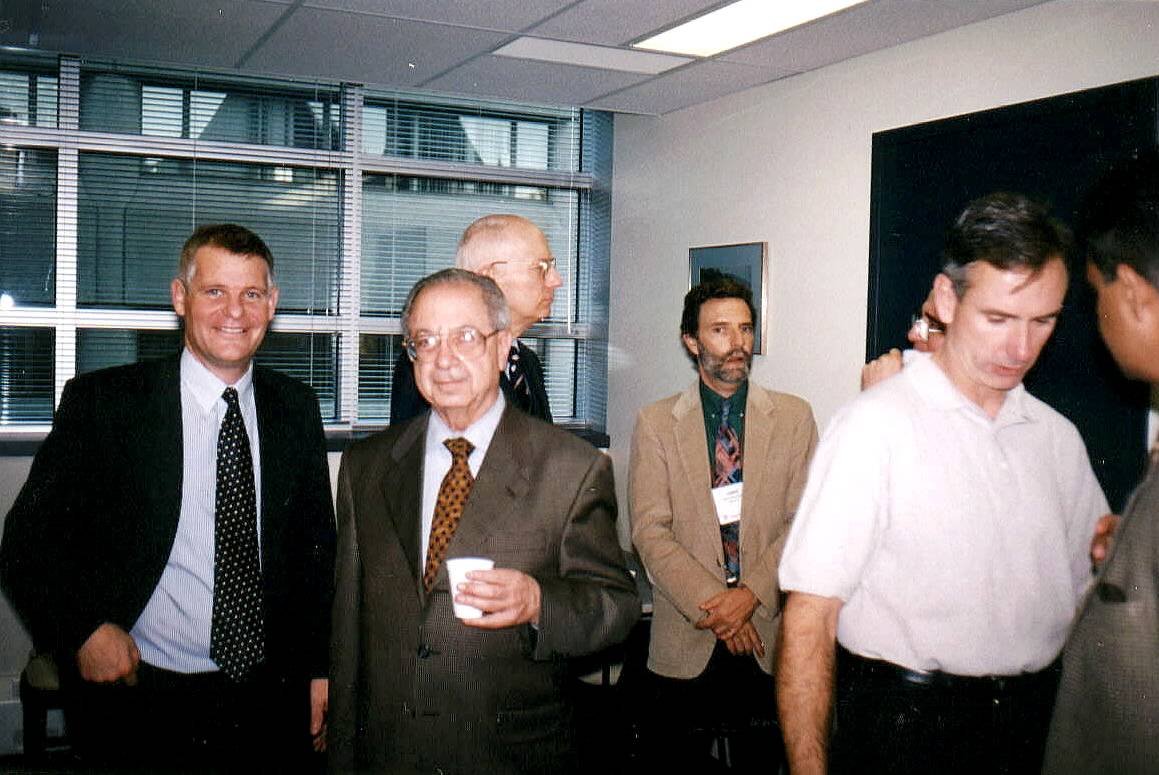 | President's reception, picture by Ara, from left to right: Wills, Rogers, Richard Munz in the back, Newton, Ross-Jones, Ed Chin, Dolsingh |